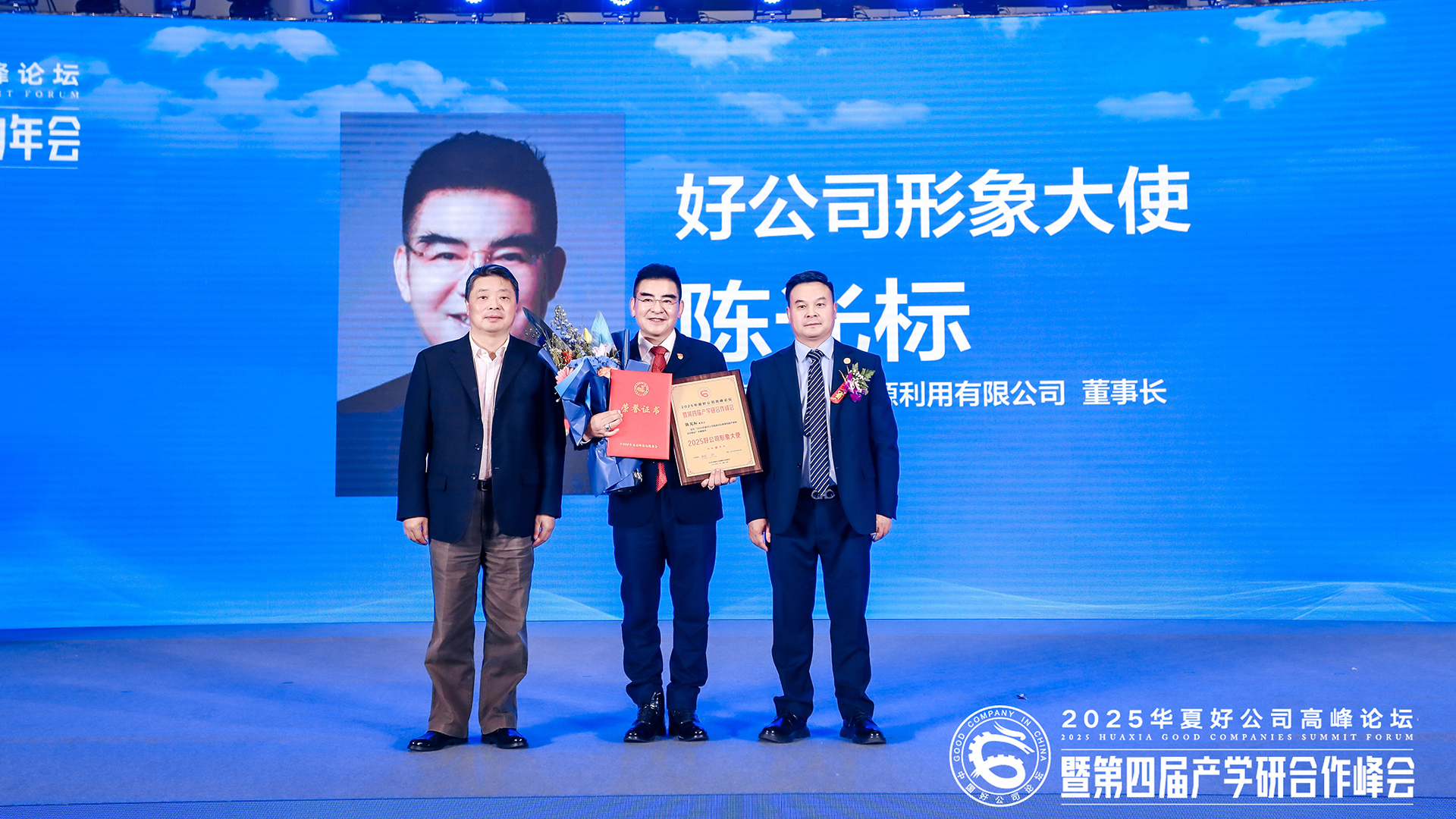 国家开发银行原行长欧阳卫民、华夏商邦俱乐部秘书长曾跃为江苏黄埔再生资源利用有限公司董事长陈光标颁授2025中国好公司形象大使荣誉