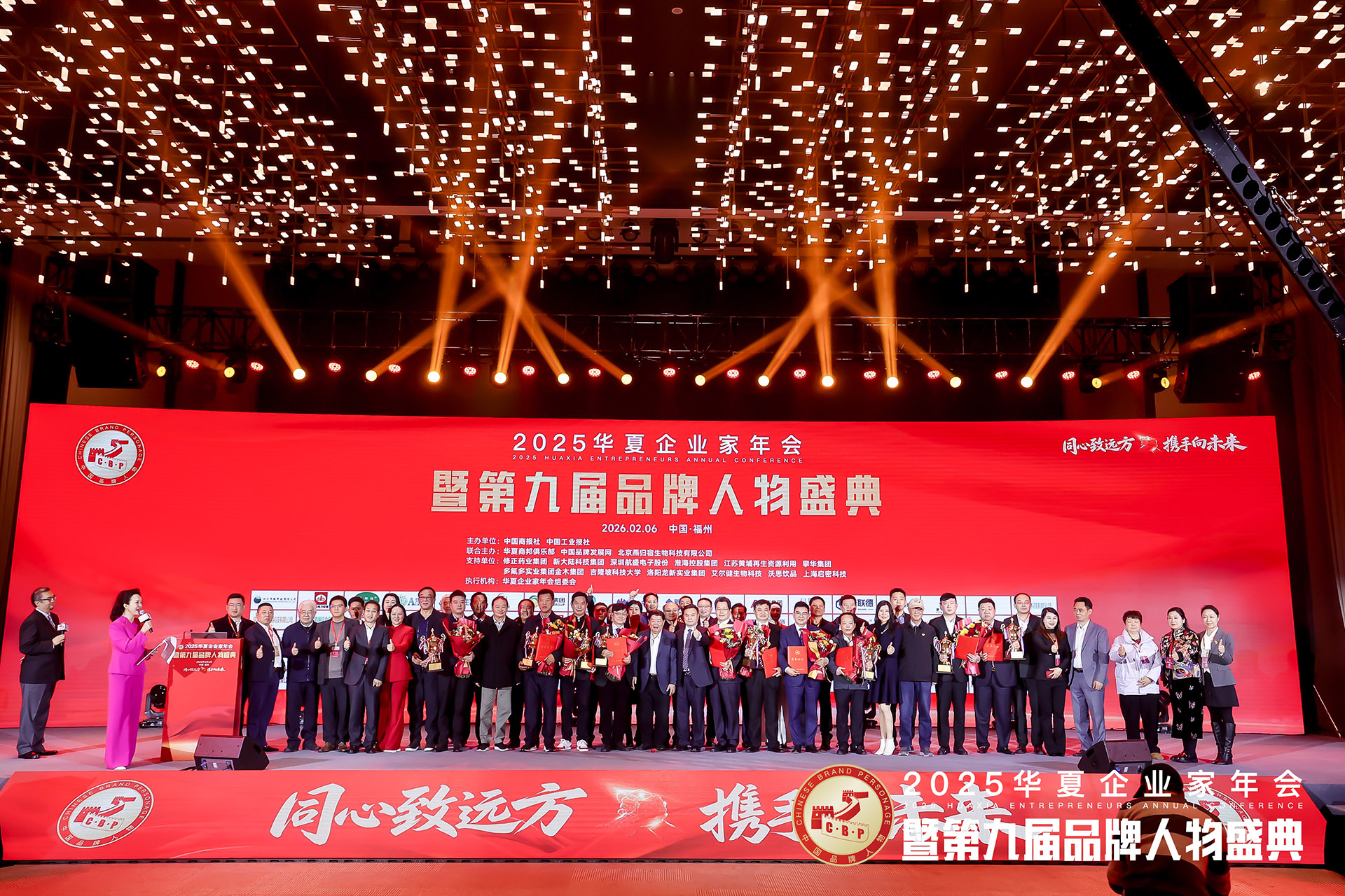 本网消息 2026年2月5-6日,由中国商报社、中国工业报社主办,华夏商邦俱乐部、中国品牌发展网、北京燕归宿生物科技有限公司联合主办,以“同心致远方・携手向未来”为主题的“2025华夏企业家年会暨第九届品牌人物盛典”隆重召开。官、产、学界领袖齐聚榕城,共析经济态势,共赏企业荣光,共探合作新机,共同铸就中国经济繁荣的新未来。